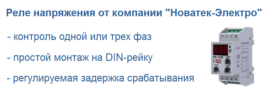 Российская компания "Новатек-Электро" основана в 1998 году, и ее продукцию знают в более чем 20 странах мира. Компания сотрудничает с такими известными фирмами как Siemens, Schneider Electric, "РУСАЛ" и многими другими. «Новатек-Электро» обладает полным циклом разработки и производства электротехнической продукции, гарантия на которую составляет 10 лет. В интернет-магазине "Спецэлсервис" представлены трехфазные и однофазные реле напряжения компании «Новатек-Электро», которые можно приобрести со склада в Москве по привлекательной цене. Трехфазные реле напряжения "Новатек-Электро" Реле контроля трехфазного напряжения применяется для защиты трехфазного оборудования (электродвигателей, промышленных установок, бытовых приборов и т.д.) от недопустимых колебаний напряжения в сети, в том числе при обрыве, перекосе, слипании и нарушении чередования фаз. Трехфазные реле напряжения используют для обеспечения работы систем кондиционирования, холодильного оборудования, компрессорных установок, тре