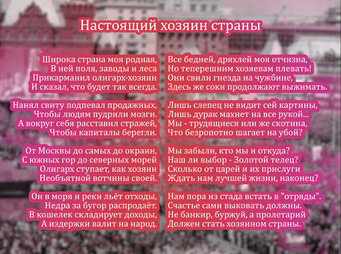 Как говорится, не прошло и года и вот, в нашей творческо-стихотворной рубрике появилось еще одно небольшое произведение - стихотворение "Настоящий хозяин страны". До сих пор многие люди мучаются вопросом: кто, если не... Наша редакция однозначно на него отвечает. Просим любить, жаловать и конструктивно критиковать. Настоящий хозяин страны