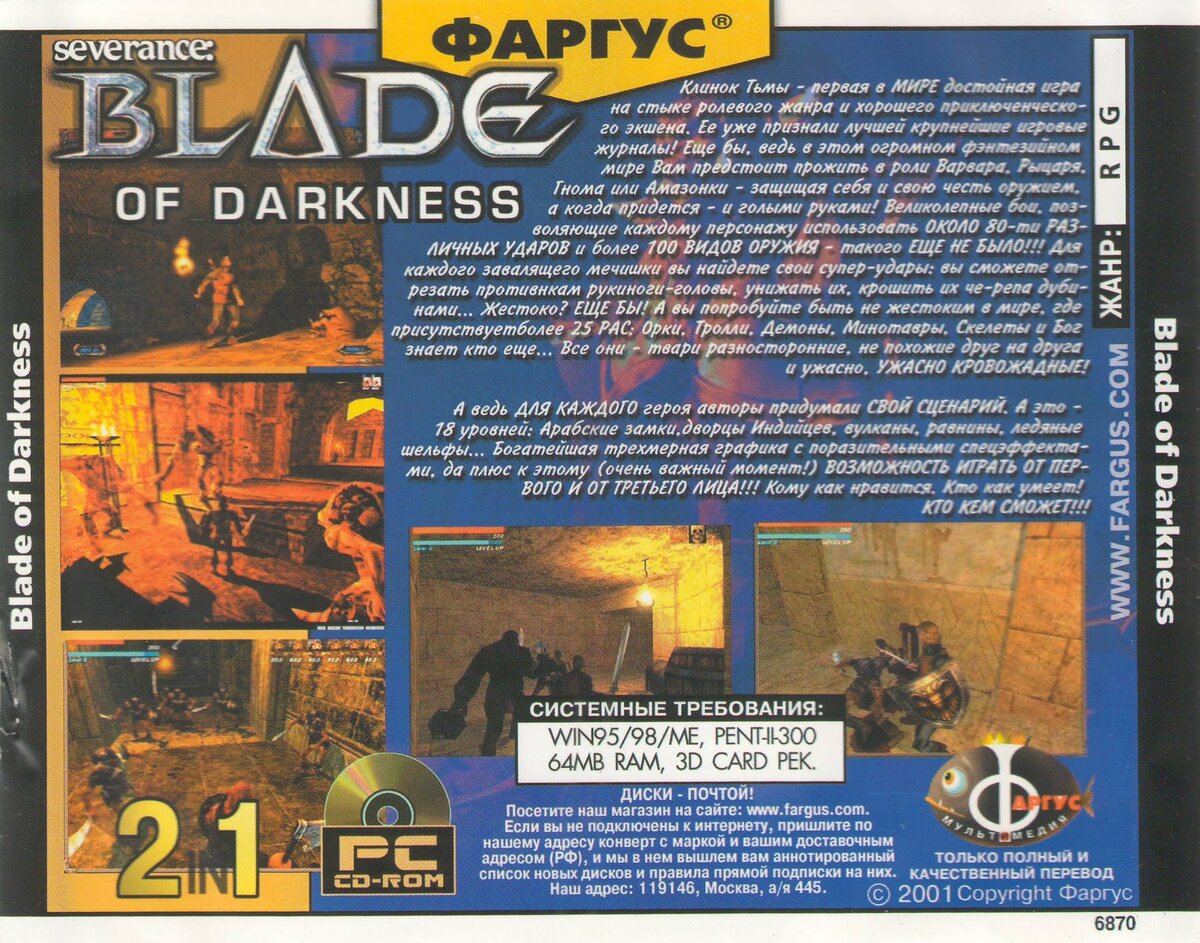 Поэтому новость о переиздании Severance: Blade of Darkness не стала исключением, ибо тут я прям мог, как это говорится, «закрыть гештальт». Давным-давно я покупал Severance за какие-то смешные деньги - лет 17 или 18 назад, ещё совсем школьником. Пришёл со школки, пошёл за диском, купил чудесную копию от «Фаргуса». И хоть мой ПК соответствовал требованиям с диска, в Blade of Darkness я толком не поиграл. Игра запускалась через раз, а если и запускалась, то тормозила. Полагаю, у «Фаргуса» просто были пиратские системные требования.