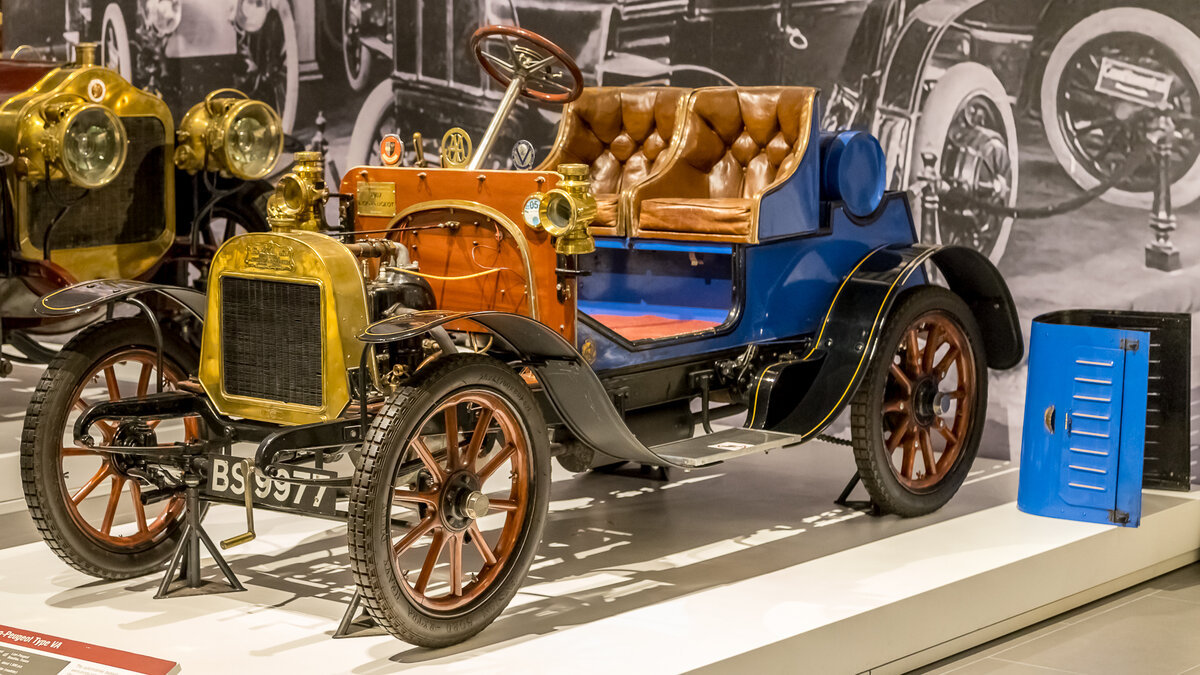 Один из самых возрастных автомобилей музея УГМК - Lion-Peugeot type VA, изготовленный в 1907 году. Это самый первый и очень удачный автомобиль под маркой Lion-Peugeot, за два года выпуска было изготовлено более тысячи автомобилей. Автомобиль приобретен в 2019 году у французского коллекционера, он на ходу и прежний хозяин даже участвовал на нем в ралли, о чем говорят памятные знаки установленные на передней панели. Автомобиль очень компактный его длина менее трех метров. Колеса на деревянных ободах, бензобак расположен за сидениями и топливо попадает в двигатель самотеком. Существовала четырехместная модификация с кузовом "фаэтон". Двигатель очень компактный одноцилиндровый, объемом 785 куб см и мощностью 6,5 лошадиных сил. В цилиндре две свечи, одна питается от аккумулятора, вторая от магнето. Сейчас двигатель работает на 80-м бензине с добавлением минерального масла, ранее работал на 40-м бензине. В карбюраторе есть поплавковая камера, предохраняющая от перелива топлива. Фары керосин