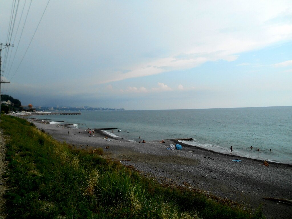Широкой и красивой набережной, как в Адлере, здесь очень не хватало. Но зато море удивило прозрачностью. Благодаря мелкой гальке, хотя по ней и неудобно ходить, вода остается всегда чистой, незамутненной. А если уйти подальше от общего пляжа, каким бы он удобным не был, то не только меньше отдыхающих, но и вода, в этот раз была кристально прозрачная, как слеза. Дно просматривается даже на небольшой глубине, а глубоко здесь почти сразу. И далеко лучше не заплывать, сносит резко в сторону довольно сильное течение.