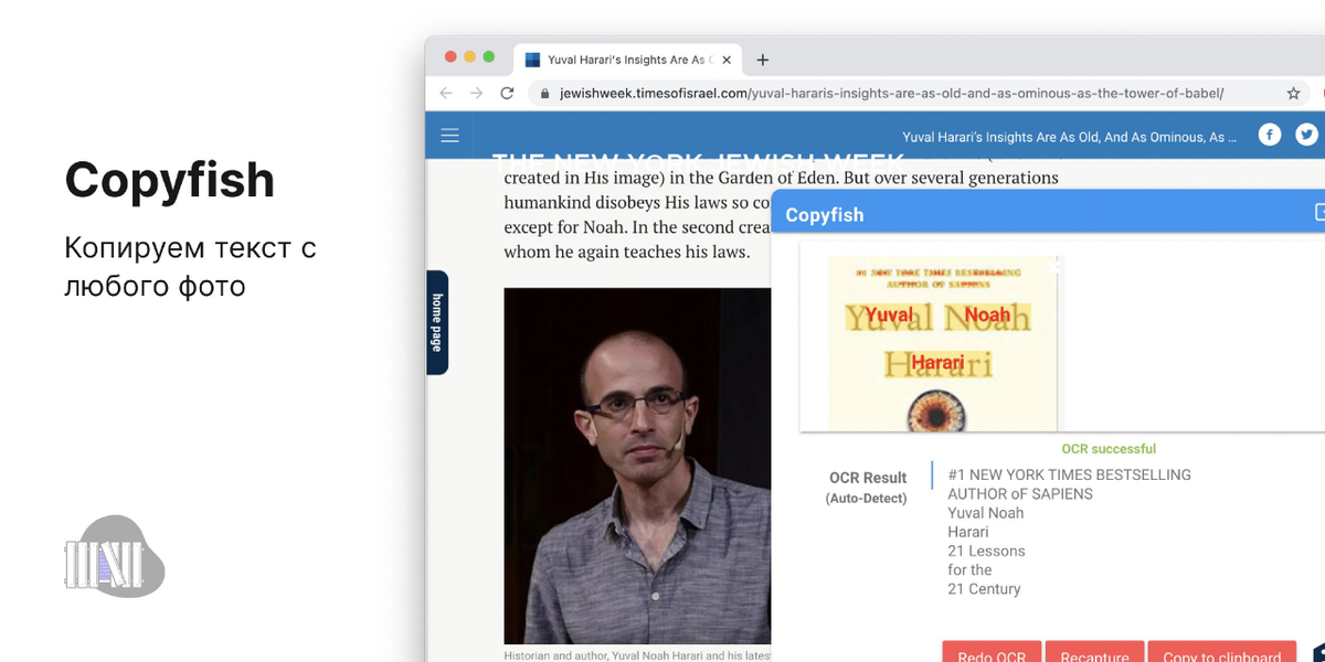 Жизненно: нужно скопировать много текста на изображении или видео, но это слишком долго. Для этого открывать приложения по типу Google Lens, выделять текст и только потом копировать — не лучший способ. Воспользуйтесь расширением Сopyfish , которое распознаёт все символы на любом изображении, видео, документе PDF, скриншоте или сообщении об ошибке. На выходе вы получите извлечённый текст и его перевод от Google Translate. Всё просто: открываем нужное фото в браузере и нажимаем на значок плагина. Выделяем область картинки и автоматически появится окно с переводом и текстом — его можно скопировать по клику. Вы можете выбрать, на какой язык перевести и поменять переводчик. Copyfish уже доступен для Chrome, Firefox и Edge.