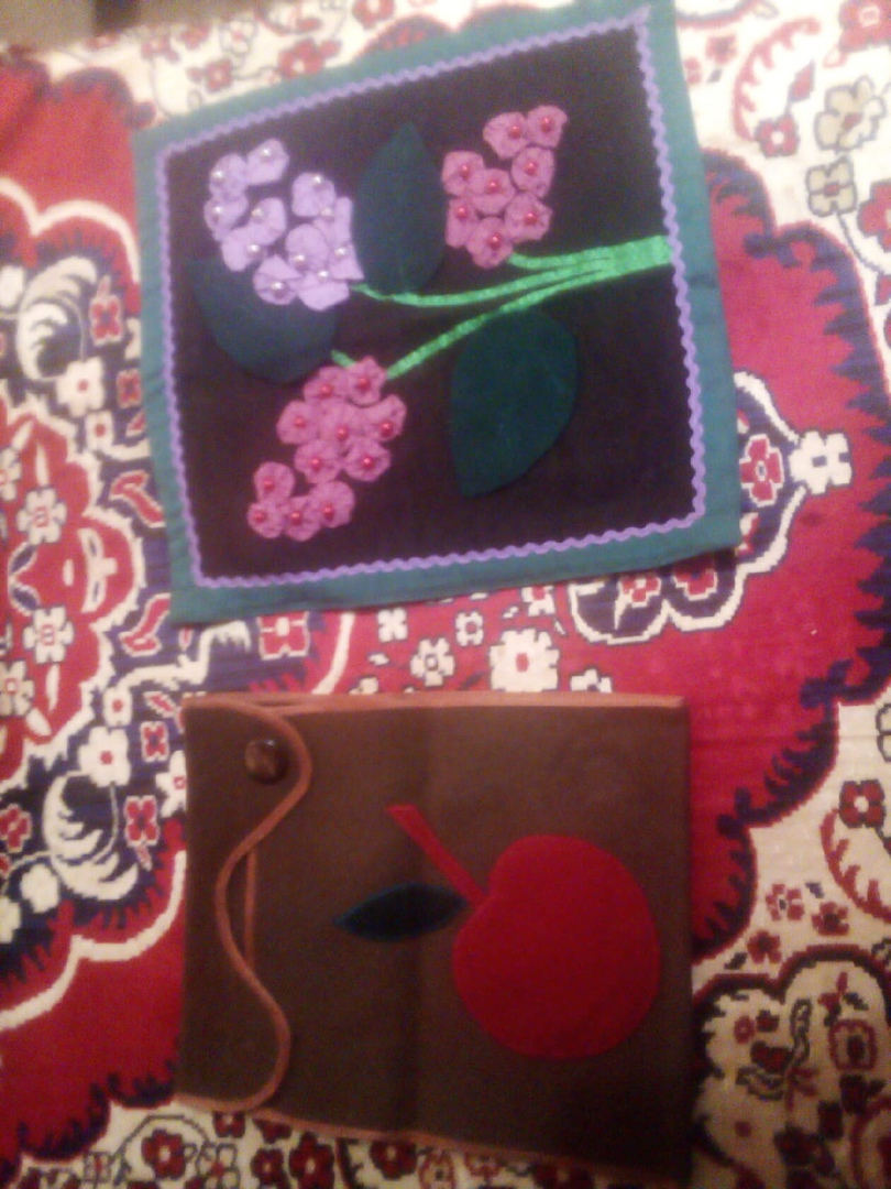 Здравствуйте, с вами Татьяна! Сегодня я хочу поделится своим рукоделием. Это мои первые работы, поэтому не будьте строги. На этом фото вы видите пано сирень из йо-йошек и газетницу. Работа с пано была очень долгая и кропотливая. Каждую деталь цветка пришлось сначала вырезать по шаблону круг из ткани, потом сметочным стежком проходить весь круг и постоянно стягивать материал, а в цент пришивать бусинки. Когда нужное количество йо-йошек было готово, это все пришли на ткань и собрали в такое красивое пано. Газетница шьётся немного проще, здесь нет никаких секретов и так все видно. Очень удобная вещь в доме, как для хранения в ней газет, так и для декора. На этом фото можно увидеть карман для мелочей. Красивая, вместительная и нужная для дома вещь. Она вешается на стену, а в кармашки можно положить все, что угодно. Очень хорошо вешать около стола школьника, туда можно поместить ручки и карандаши и они больше не будут падать со стола На этом фото прихватки, их шить довольно просто и быстро