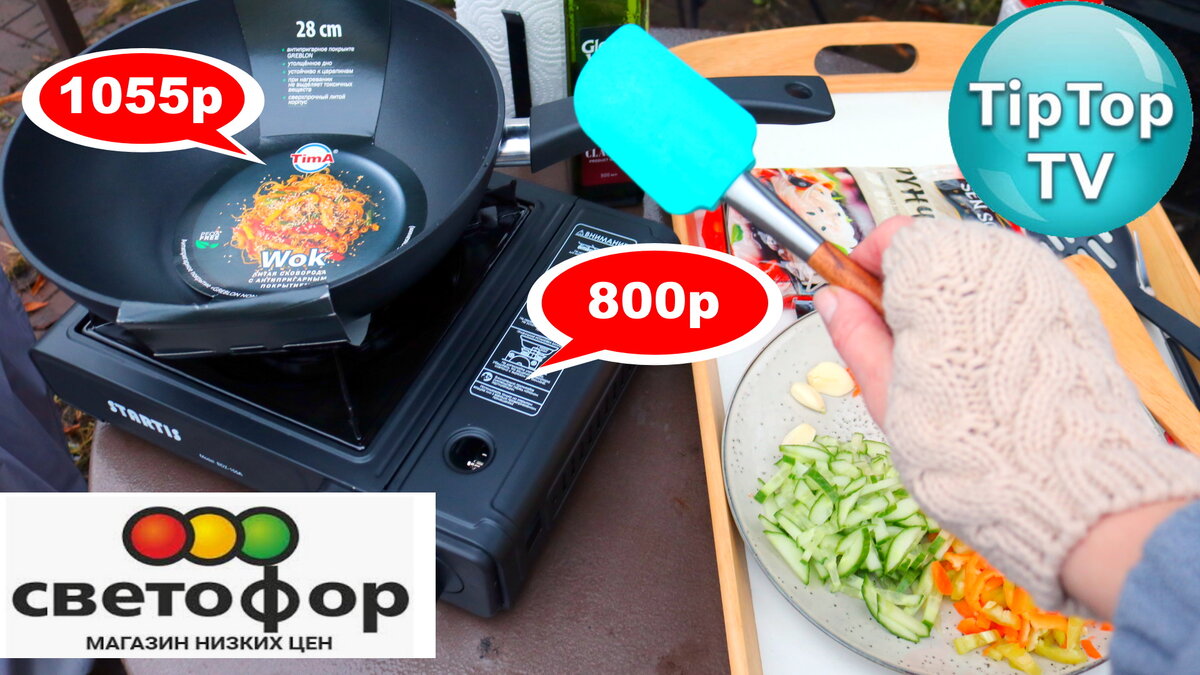 Никогда и не думала раньше о приобретении портативной газовой плиты и вока-сковороды, но, сама не захочешь, а жизнь заставит )) Отключили в очередной раз электричество на даче (ветер, дождь, ураган, непогода), пару часов посидела без чая и горячей еды, да рванула в Светофор Киржача за покупками.