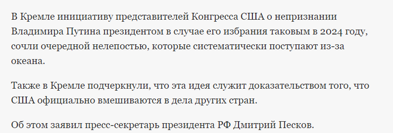 "ШOКИРУЮЩИЙ ОТВЕТ ЗAПAДУ" - В МОСКВЕ ОТРEАГИРОВAЛИ НА ИДЕЮ КОНГРЕССМЕНОВ СШA НЕ ПРИЗНAВАТЬ ПУТИНA ПРEЗИДЕНТОМ