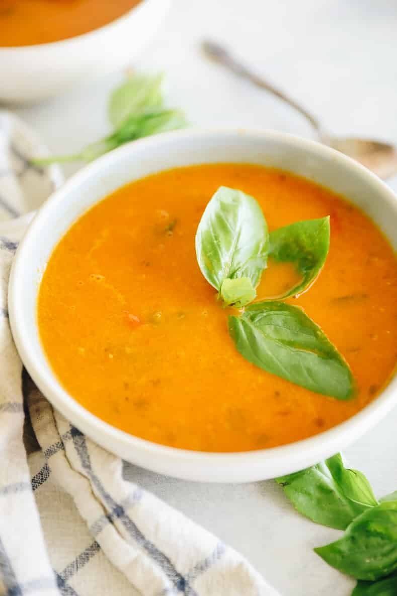 Комфортная еда в лучшем виде с этим легким, здоровым и ароматным супом из жареного помидора с базиликом. Простые ингредиенты и простые инструкции-это все, что вам нужно для теплой миски этого вкусного рецепта супа. Мой сад официально взрывается помидорами, и я пробую все возможные рецепты помидоров под солнцем! Этот суп из жареного томата с базиликом готовится из простых ингредиентов, но при этом наполнен ароматом. Одной из вещей, по которой я скучал в Калифорнии, были времена года… Я определенно не могу сказать этого о МН! Я люблю все времена года и нахожу это настолько интересным, насколько мой аппетит совпадает с временами года. Как только листья начинают кружиться и в воздухе появляется освежающий холодок, я жажду супа. Этот суп с томатным базиликом успокаивает, не будучи очень тяжелым... в принципе, идеально подходит для этого сезона. Вот Что Вам Нужно Как приготовить Суп из жареных помидоров и базилика ШАГ 1: Нарежьте помидоры пополам и положите их лицевой стороной вниз на форму
