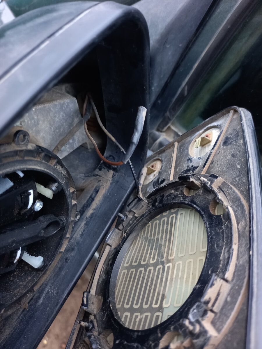 Хочу рассказать как можно поменять зеркальный элемент на Приоре это очень просто и быстро, сначала нужно отогнуть зеркала вниз и плоской отвёрткой подогнуть держатели, их четыре штука два сверху два снизу на фото показано после этого подгибаем по кругу,снимаем зеркальный элемент после этого отсоединяем провода, подсаеденям новый зеркальный элемент и аккуратно нажимая на зеркало вставляем, чтобы не сломать крепежа.