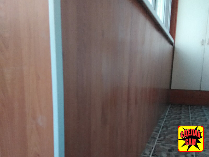 Когда делал ремонт, и менял напольное покрытие, то не стал выбрасывать старый ламинат, и он мне пригодился для отделки парапета лоджии. Это дало большую экономию средств. Сама технология такой отделки не очень сложная, и об этом данная статья. Пришлось докупить только несколько штук трёхметровых реек 10х30 мм, несколько метров рулонного утеплителя толщиной 10 мм, и пакетик кляймеров. Для начала сделал стартовую рейку, прибив к ней пластиковый уголок. (листайте) Теперь можно закрепить эту рейку к стене, выставив вертикаль по уровню. Далее надо прикрепить горизонтальные рейки, расстояние между ними я сделал 60 см, нижний и верхний зазор произвольные, в зависимости от высоты парапета. Между рейками наклеил два ряда двустороннего скотча, и по одному ряду сверху и снизу. На скотч крепится утеплитель, рейки при этом остаются открытыми. Теперь можно начинать установку планок ламината, ставлю стартовую планку, утопив край в уголок, тем самым эта сторона будет закреплена. Свободную стор