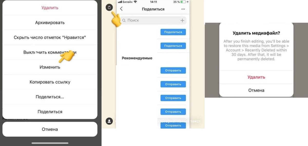 Наконец то не придется удалять всю карусель, мы долго этого ждали. Чтобы удалить отдельные фото и видео необходимо зайти в редактирование публикации, а затем на нужном слайде нажать на корзину в левом верхнем углу. Кстати, отдельные слайды после удаления тоже помещаются в недавно удаленные, если вдруг вы передумаете и захотите вернуть удаленный слайд, у вас будет 30 дней на это.