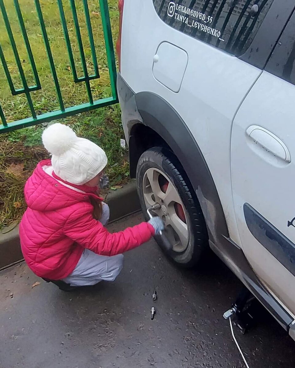 А еще здрасти))) Ну чтож выходные в самом разгаре))) Начали мы их с дочей с замены колес))) У нас традиция, два раза в год колеса меняем вместе))) Сегодня она активно мне помогала, откручивала и закручивала колеса, правда поделила пополам, ей два колеса и мне два колеса))) По резине у нас все те же самые BRIDGESTONE ICE CRUISER 7000, на Ларгусе они сегодня встали на 5 сезон, отличная резина на любую зиму, на ней хоть по снегу, хоть по льду, хоть по лужам и даже по сугробам можно, только осторожно, тк Ларгус длиннобазный и легко садиться на брюхо))) Прошлая зима, с обильным снегопадом в феврале, немного подушатала резину, правда одно колесо, немного порастеряли шипов, очень много машин перетаскал на тросу, выдергивал из снежных засад от совсем мелких, до Газелей))) Но главное сами выбирались отовсюду))) Ну а еще наконец-то поменял термостат...родной отходил тысяч 70 и заклинил на большой круг. Тк весной и летом лень было этим заниматься, а сейчас похолодало и машина долго прогревается