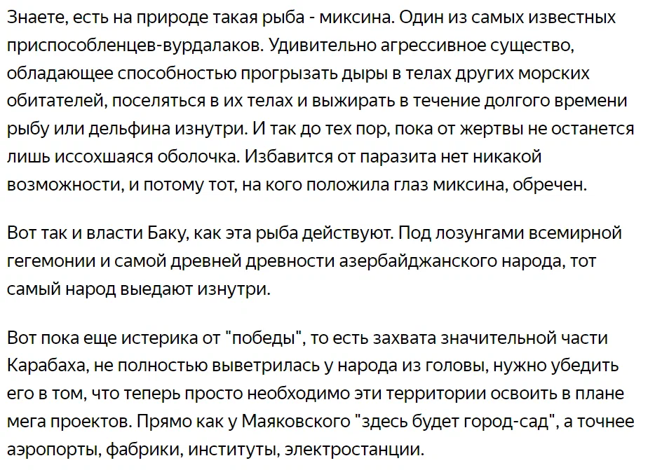 Власти Азербайджана думали, что "проглотят" Карабах, а теперь Карабах "пожирает" Азербайджан