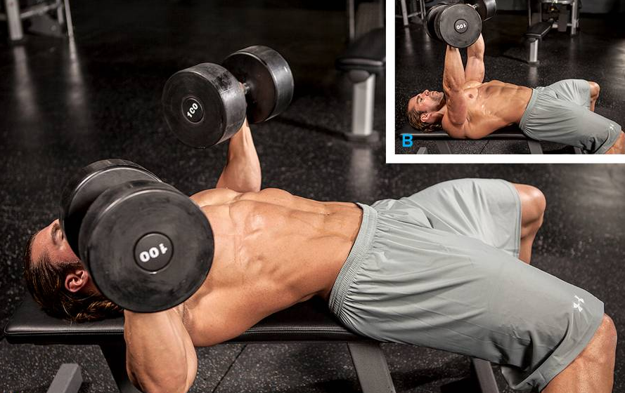 Жим гантелей. Упражнение для проработки грудных мышц.