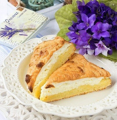 ИНГРЕДИЕНТЫ ПОРЦИИ 8 Пшеничная мука 750 г Куриное яйцо 4 штуки Творог 500 г Разрыхлитель 1 чайная ложка Сливочное масло 100 г Сахар 50 г 1.В миску выкладываем 2 яйца, часть творога (100 г) и растираем их миксером с сахаром. Потом выкладываем мягкое масло и снова растираем. Высыпаем постепенно муку маленькими порциями и продолжаем вымешивать. В итоге получается песочное тесто на основе творога и масла. 2.Творог (400 г) высыпаем в тарелку и приправляем его сахаром и желтками из 2 яиц. Белки оставить для взбивания. Перетираем творог ложкой, пока не получится однородная и красивая начинка. 3.Тесто раскатываем в тонкий пласт и выкладываем его в форму для выпекания. Не забываем ее покрыть маслом и пергаментом. Тесто должно ровно прилегать плотно к форме и не пузыриться. 4.Поверх теста раскладываем творог и также его разравниваем руками или лопаткой. 5.Миксером или блендером взбиваем белки из с сахаром, в итоге получается стойкая пена, которую нужно положить поверх творога. 6.Ставим форму в