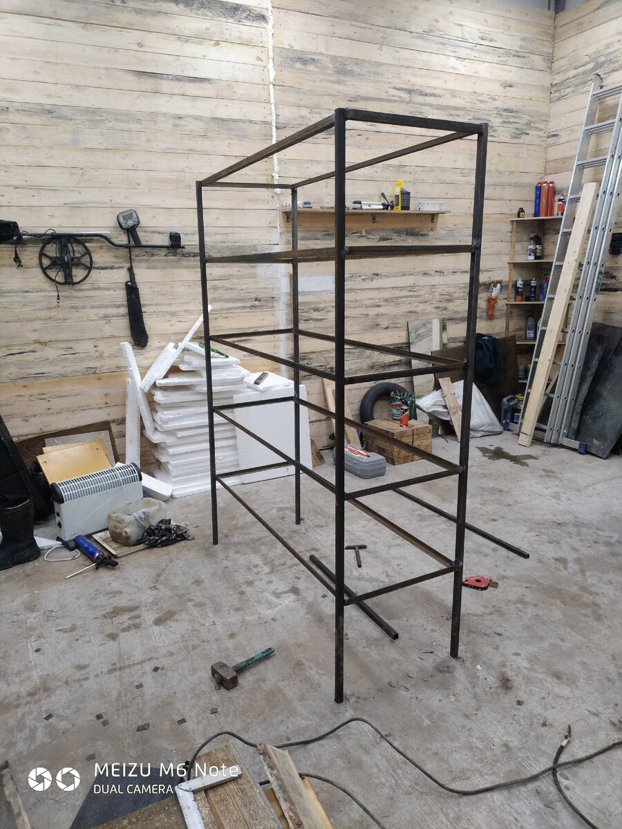 У кого есть гаражи, всегда сталкиваются с проблемой: куда всё положить- мы не стали исключением. Постоянный мусор под ногами(который нельзя выкинуть, поскольку он может пригодится), очень мешал и занимал много места и нашего времени, на переноску с одного угла в другой. Было решено сварить стеллаж из профильной трубы и уголков. Для этого купили 8 метров трубы и 20 метров уголка. Из уголков сварили рамы для полки. Нарезали по 2 метра 4 стойки. Всё обварили и затем покрасили. Цена на фанеру слишком большая, поэтому мы сделали просто, собрали с мусорок старые шкафы и их уложили на полки. Теперь можно спокойно работать и достраивать гараж мечты. Подписывайтесь на канал, ставьте лайки и пишите комментарии. Всем удачи.