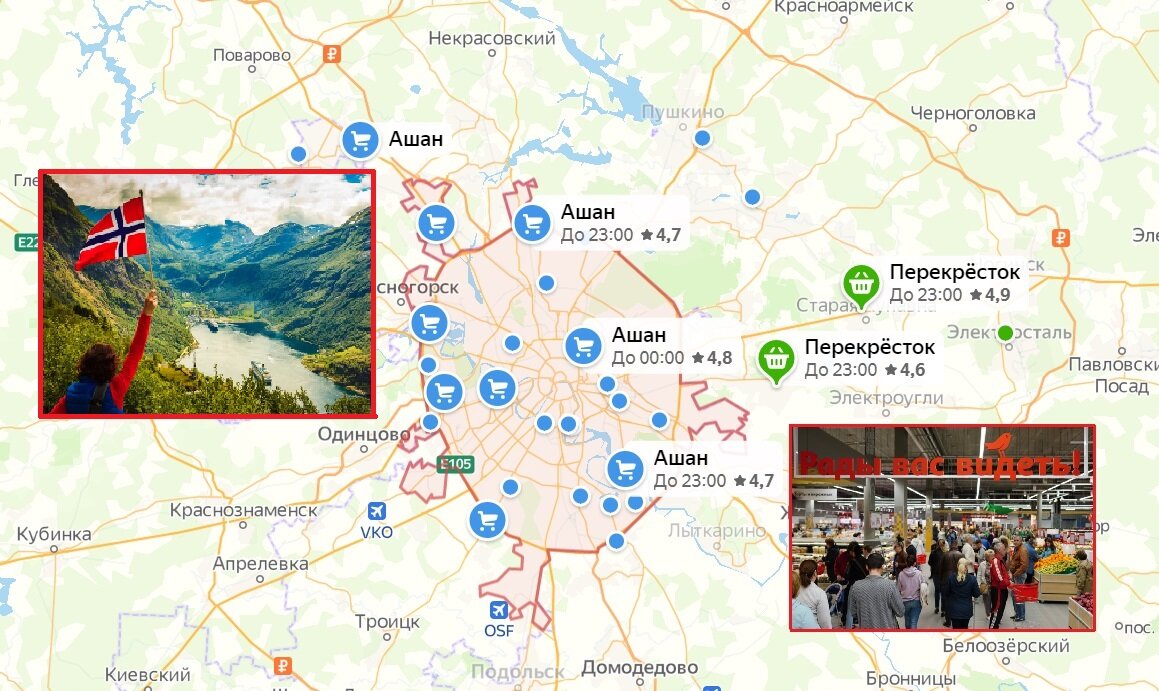 Друг из Норвегии накупил в Ашане продуктов на 3 тысячи рублей. В Норвегии бы он потратил в 7 раз больше, купив то же самое