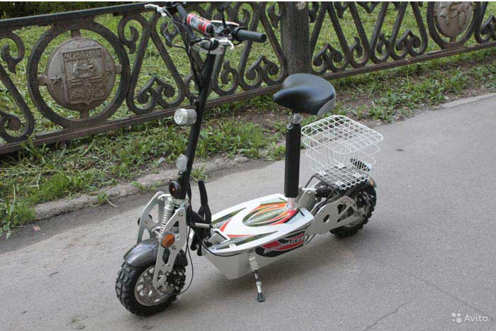 Справедливо считается самым тихим электросамокатом. Поскольку у него нет цепи, он отлично переносит как асфальтированную, так и грунтовую дорогу. На руле этого транспортного средства прикреплен спидометр с дисплеем, одномером и датчиком заряда батареи. Его вес составляет 30 кг, для управления мощностью имеется специальный курок.