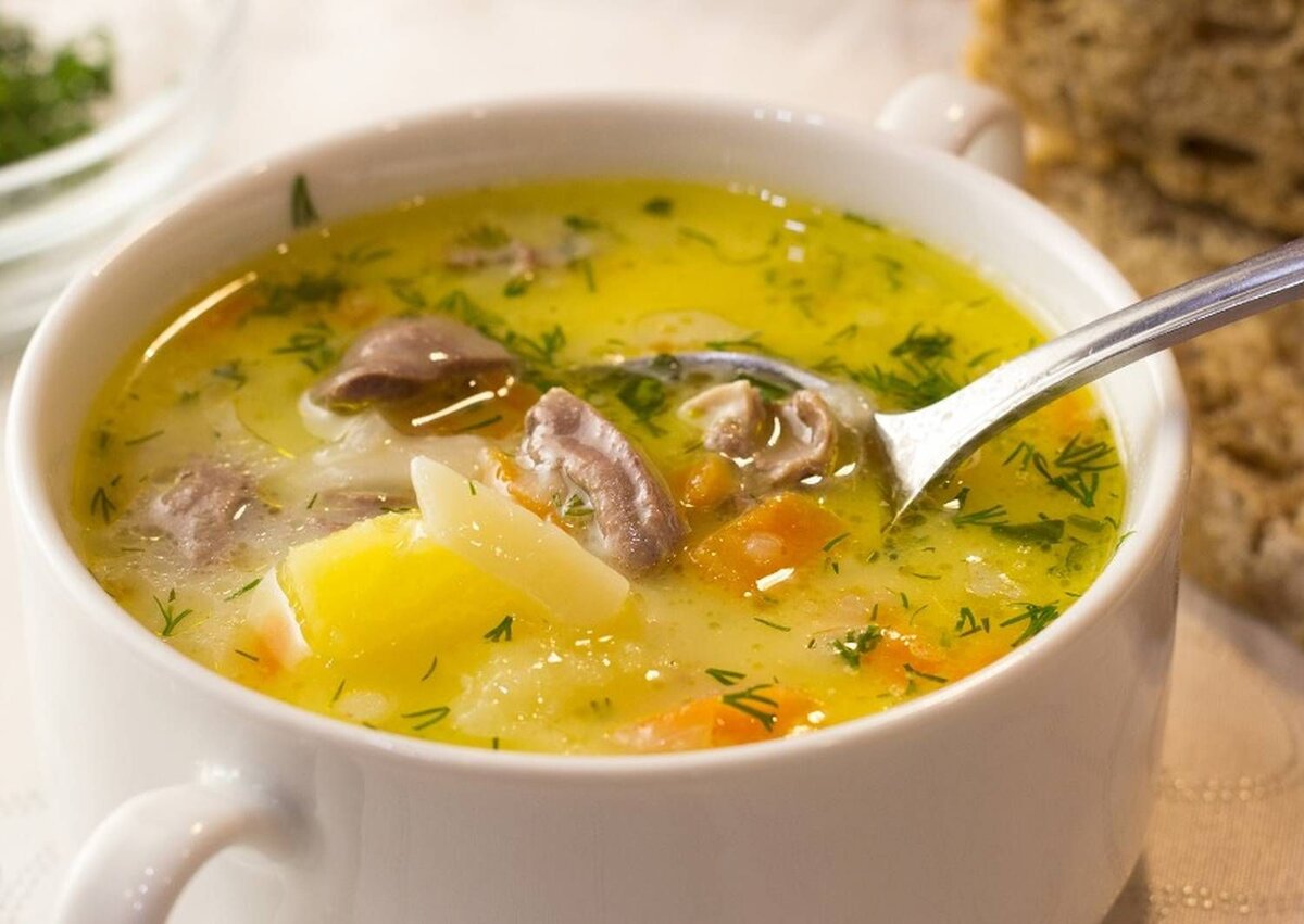 Сегодня я хочу приготовить очень вкусный, ароматный супчик! Это первое блюдо очень хорошо не только для всей семьи, но и для гостей. Супчик получается очень вкусным и ароматным! А готовится очень просто! Ингредиенты: Бульон (любой) 2 л Картофель 8 шт Морковь 1 шт. Лук репчатый 1 шт Масло растительное для жарки Зелень укропа 1 пуч. Батон белый 100 гр Сыр твердый 60 гр Соль по вкусу Перец черный молотый по вкусу Как приготовить: В кастрюлю налить воду и поставить на огонь. Картофель очистить и нарезать кубиками. Морковь натереть на крупной терке, лук нарезать мелкими кубиками. Когда вода в кастрюле закипит, бросить в кастрюлю картофель и морковь. Лук обжарить на растительном масле до прозрачности. Добавить к луку морковь и обжаривать пару минут. Затем добавить обжаренные овощи в суп. По вкусу посолить и поперчить. Варить еще минут 5, пока картофель не будет готов. Багет нарезать ломтиками толщиной 2-3 см. Сыр натереть на мелкой терке. За несколько минут до готовности супа добавить в не