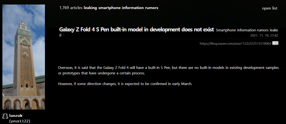Согласно предыдущим отчетам, Samsung готовится к запуску своего Fold4 следующего поколения примерно в 3 квартале 2022 года с улучшенными камерами. А теперь появилось еще больше утечек, причем последняя из них утверждает, что в смартфоне не будет специального слота для S Pen. Согласно советчику Ланцуку, похоже, что предстоящая Galaxy Z Fold4, как и ее предшественница, может не иметь слота для S-пера. Телефон по-прежнему будет поддерживать стилус, но вам может понадобиться задняя крышка для хранения S Pen, как у нынешнего Galaxy Z Fold3. Информатор ранее сообщал, что Galaxy Z Fold4 будет оснащен улучшенной камерой под дисплеем (UDC) как на внутреннем, так и на внешнем экранах. Общая настройка основной камеры также обновляется, чтобы привести Galaxy Z Fold4 в соответствие с качеством камеры, предлагаемым текущим флагманом на рынке. По слухам, складной смартфон также, как ожидается, будет оснащен предстоящим Snapdragon 8 Gen1 (Snapdragon 898) с таким же размером экрана и батареей (4400 МГц