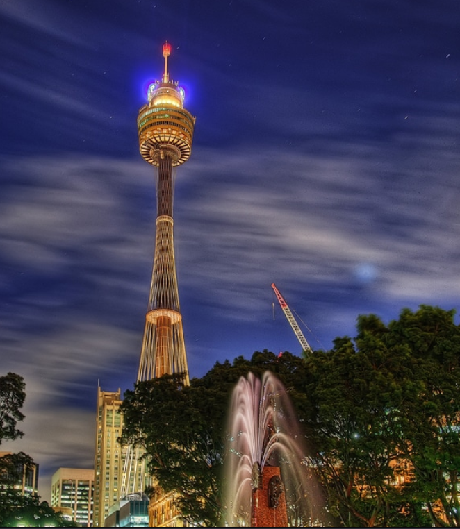Вид на Сиднейскую телебашню ночью