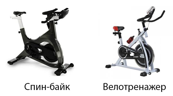 Велотренажер и спин-байк, он же сайкл, работают по одному принципу — ты крутишь педали. Чем же они различаются и для чего каждый нужен? На этот вопрос мы и ответим в статье. 1. ГЛАВНОЕ ОТЛИЧИЕ. Вес маховика. Маховик — это диск, который соединен ремнем с педалями. По-сути, во время тренировки пользователь педалями крутит этот диск. И чем он тяжелее, тем сложнее крутить педали, то есть нагрузка будет выше. В спин-байки (различные модели спин-байков можно посмотреть в нашем каталоге) устанавливают тяжелые маховики, их вес — 20-25 кг. Тяжелый маховик обеспечивает большую нагрузку. Поэтому сайкл рассчитан на интенсивные тренировки. Благодаря тяжелому маховику тренировки практически полностью напоминают езду на настоящем велосипеде. Педали крутятся плавно, нет заминок и провалов в движении. В велотренажерах вес маховика — 8-10 кг. На нем не получится крутить педали с той же интенсивностью, как на спин-байке. Также из-за веса маховика нельзя добиться идеальной плавности хода даже на дорогих м