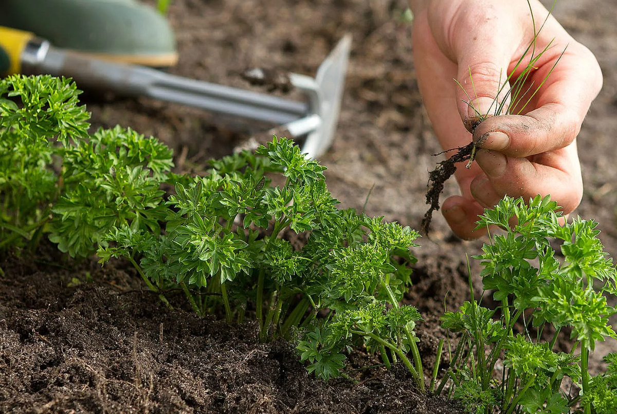 Как только сойдет снег, растения покрывают пленкой и получают раннюю зелень. При выгонке зелени подкармливать петрушку не нужно. Гряду из – под прошлогодней петрушки освобождают в начале июня. К этому времени молодая петрушка, которую собирают при прореживании, уже становится пригодной для пищи.