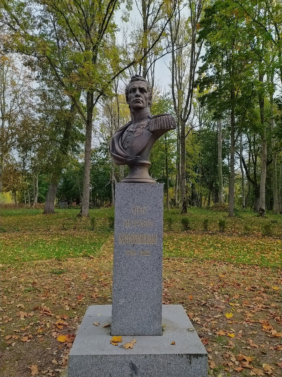 По дороге в Гдов , буквально не доезжая 9 км, на правом берегу реки, и, кстати, совсем недалеко от базы "Чистые пруды" расположено Кярово. Это усадьба старинного рода Коновнициных, рода военных, прославивших Россию. Портрет Петра Петровича Коновницына мы увидим в Эрмитаже, в галерее героев отечественной войны 1812 года. Участвовал в Бородинском сражении, а 4 сентября назначен Кутузовым дежурным генералом, а фактически исполняет обязанности начальника штаба.