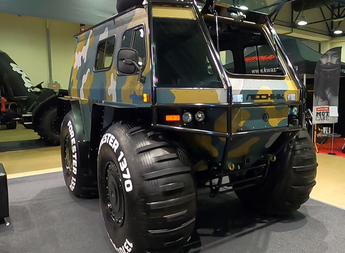 Небольшой, компактный вездеход Лесник-М Север заприметил на выставке "Вездеходер 2021". Внешне техника понравилась. Оказалось, что в технической части, в основном использованы отечественные узлы и агрегаты. Поэтому и цена на водоплавающий "проходимец" относительно небольшая. Лесник собирают в Вологде много лет и уже решили все детские болезни техники. Поэтом он пользуется заслуженной популярностью среди охотников и любителей путешествий по тотальному бездорожью. Двигатель Лесника расположен по центру кузова. Конструкторы используют штатный бензиновый мотор ВАЗ рабочим объемом 1.6 литра. Это 8-клапанный агрегат от переднеприводных Лада, с 5-ступенчатой механической коробкой. Вместо штатных полуосей из коробки торчат карданы, которые идут на передний и задний мост. Мосты установлены от УАЗа. То есть в случае ремонта движка или трансмиссии никаких проблем с запчастями не возникнет. Тормоза Лесник-М Север дисковые на всех 4 колесах. Самое интересное, что еще есть и 5-ый тормозной диск уст