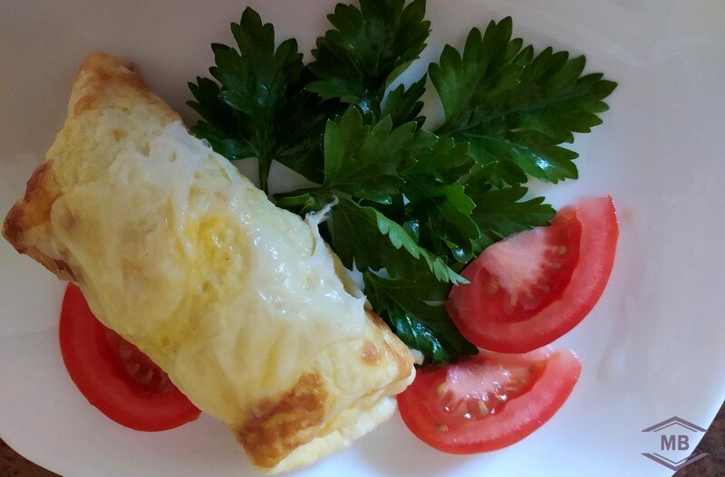Для плотного завтрака или полноценного обеда/ужина прекрасно подойдут сочные, вкусные яичные рулеты с фаршем! Ингредиенты: 3-4 яйца, 150-200 мл воды, 350 грамм фарша, головка лука, 30 грамм твёрдого сыра, 3 ст.ложки сметаны, соль и перец — по вкусу. Процесс приготовления: Взбиваем венчиком до однородной консистенции яйца и 2 столовые ложки сметаны со щепоткой соли. На разогретой сковороде выпекаем блинчики с двух сторон до готовности. Фарш и мелко порубленный лук перемешиваем, приправляем специями и солью. Формируем из массы продолговатые брусочки столько же, сколько получилось блинчиков из яиц. Заворачиваем фарш в блинчики. Получившиеся рулеты выкладываем в форму для запекания. Заливаем всё водой, разведённой со столовой ложкой сметаны. Вода должна закрывать рулеты чуть больше, чем на половину. Запекаем в духовке 15-20 минут при 180-200 градусах под фольгой. Далее снимаем фольгу, посыпаем сыром и продолжаем запекать 5-15 минут, чтобы сыр расплавился. Подаём порционно, украсив зеленью