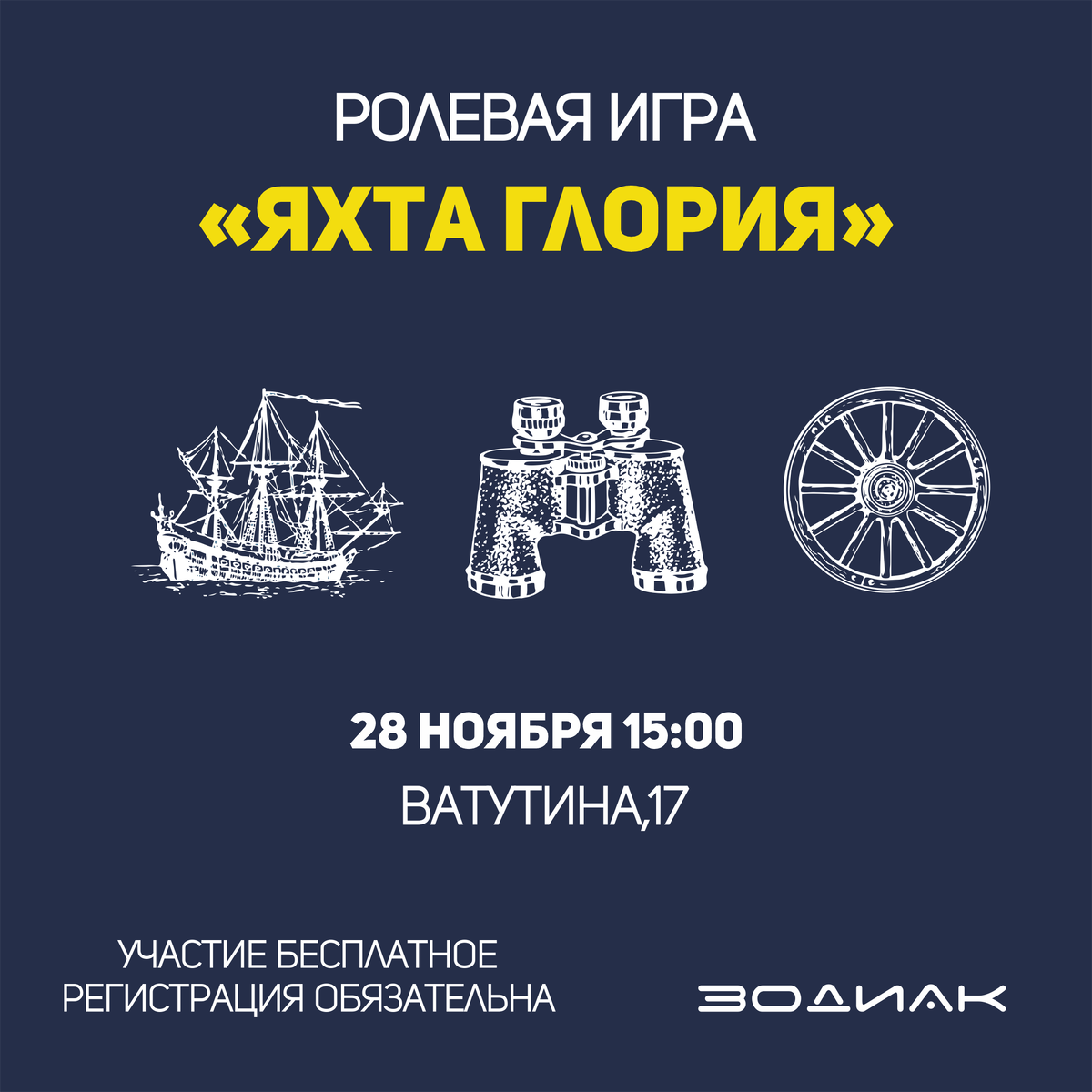 Хобби-центр «Зодиак» приглашает всех желающих открыть тайны яхты «Глория». В Европе только что закончилась Вторая Мировая Война. Германия подписала акт о безоговорочной капитуляции. Страны-победительницы готовятся к послевоенному разделу сфер влияния. Начинается подготовка к судебному процессу над нацистскими преступниками… Но суд начнется еще не скоро, а пока многие пытаются спастись, смешавшись с потоком беженцев, наводнивших Европу. Бежавшие фашисты, награбленные ими ценности, немецкие архивы становятся объектом пристального внимания разведок США, Великобритании, Советского Союза. А между тем, из южно-испанского порта Кадис в Атлантический океан вышла комфортабельная яхта с красивым названием «Глория»… Но куда она приплывет? И что станет с теми, кто на ее борту? Участником предстоит вжиться в полученную роль и выполнить задачи в рамах этой рои. Читать сценарий игры мы не советуем, поскольку это испортит удовольствие от самостоятельного выяснения того, что на самом деле происходит.