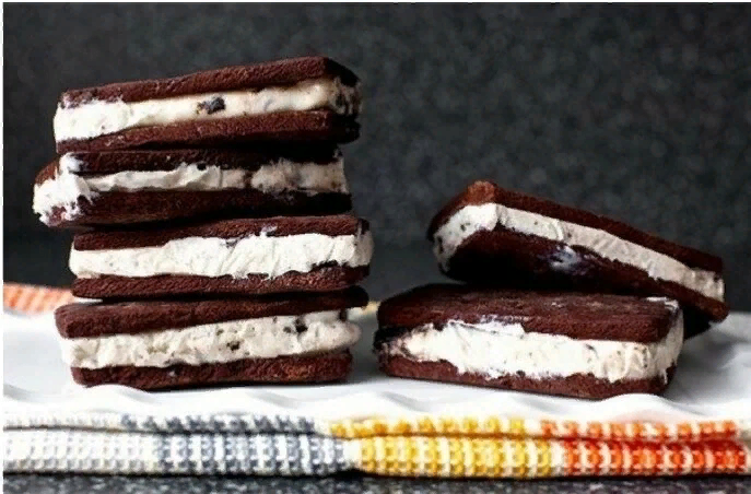 На противне, на котором выпекалось печенье равномерно распределите мороженое (слегка размягченное), чтобы пол