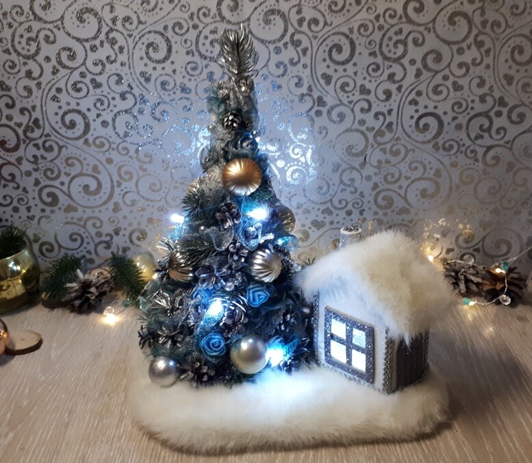 Как сделать световую новогоднюю композицию, с красивой елочкой и снежным домиком!