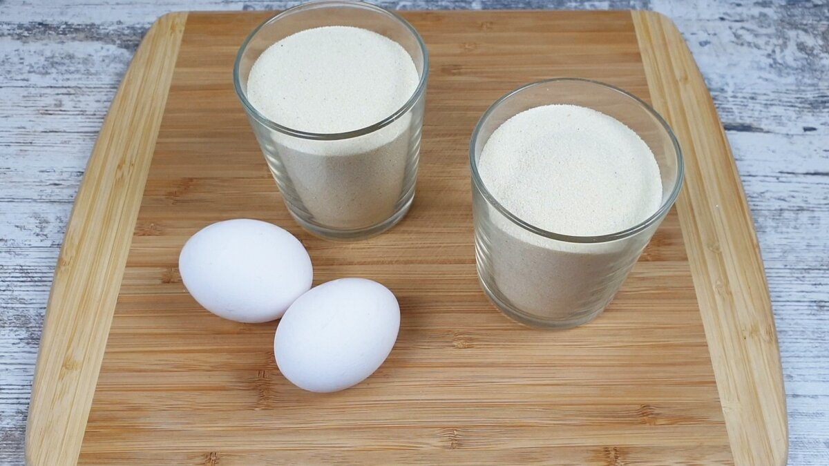 Вкусные и пышные оладьи из манки на кефире очень нравятся моей семье. Как готовить: 2 яйца разбиваем в миску. Добавляем 3 столовых ложки сахарного песка и пол чайной ложки соли. Венчиком взбиваем яйца с сахаром. Вливаем 250 мл кефира и снова перемешиваем. Добавляем 2 стакана манной крупы (стакан 200 мл). Аккуратно перемешиваем веничком до однородности. Накрываем пленкой и оставляем на 30 минут, чтобы манка набухла. Затем добавляем пол чайной ложки разрыхлителя и перемешиваем. Сковороду разогреваем на среднем огне и вливаем растительное масло. Ложкой выкладываем тесто в сковороду и обжариваем до золотистого цвета. Затем переворачиваем, накрываем крышкой и готовим до готовности еще 5 минут. Готовые оладьи выкладываем на бумажные полотенца, чтобы впитался лишний жир. Подаем со сметаной. Ура, готово! Приятного аппетита! Видео с рецептом приготовления оладий из манки на кефире можно посмотреть на моем канале #улыбнись и попробуй #рецепт - 2 стакана манки (стакан 200 мл) - 320 г - 1 стакан