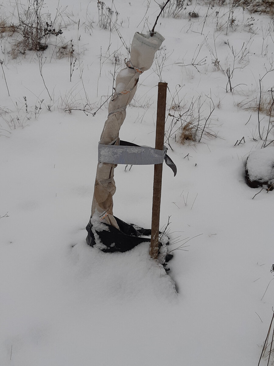 Как владельцы еще совсем юного сада, мы волнуемся за каждое деревце. Нашим зеленым питомцам всего по 2-3 года от прививки. А высаживать мы их начали только позапрошлой весной. И продолжаем :). Кому-то наш метод защиты деревьев на зиму покажется банальным, а кому-то, я надеюсь, поможет. Как и всегда, никаких дорогостоящих ухищрений. Делаем все из того, что есть. Купили только молотый красный перец, но можно было бы и его самим заготовить. Итак, сыплем перец под основание деревца. Если у вас большое дерево, то можно вокруг коры и немного на саму кору у основания. Затем старыми п/э мешками оборачиваем основание, чтобы мешок чуть лежал на земле. А остальное оборачиваем вокруг ствола, продвигаясь вверх по нему. При этом плотно обвязываем веревкой или тканевой лентой. Кстати, лент нужно много, поэтому не стесняйтесь нарезать дырявые колготки или старые вещи. Экономика должна быть экономной :). На одно молодое деревце уходит половина мешка. Мы просто режем пополам дырявый мешок. "Бинтуем" до