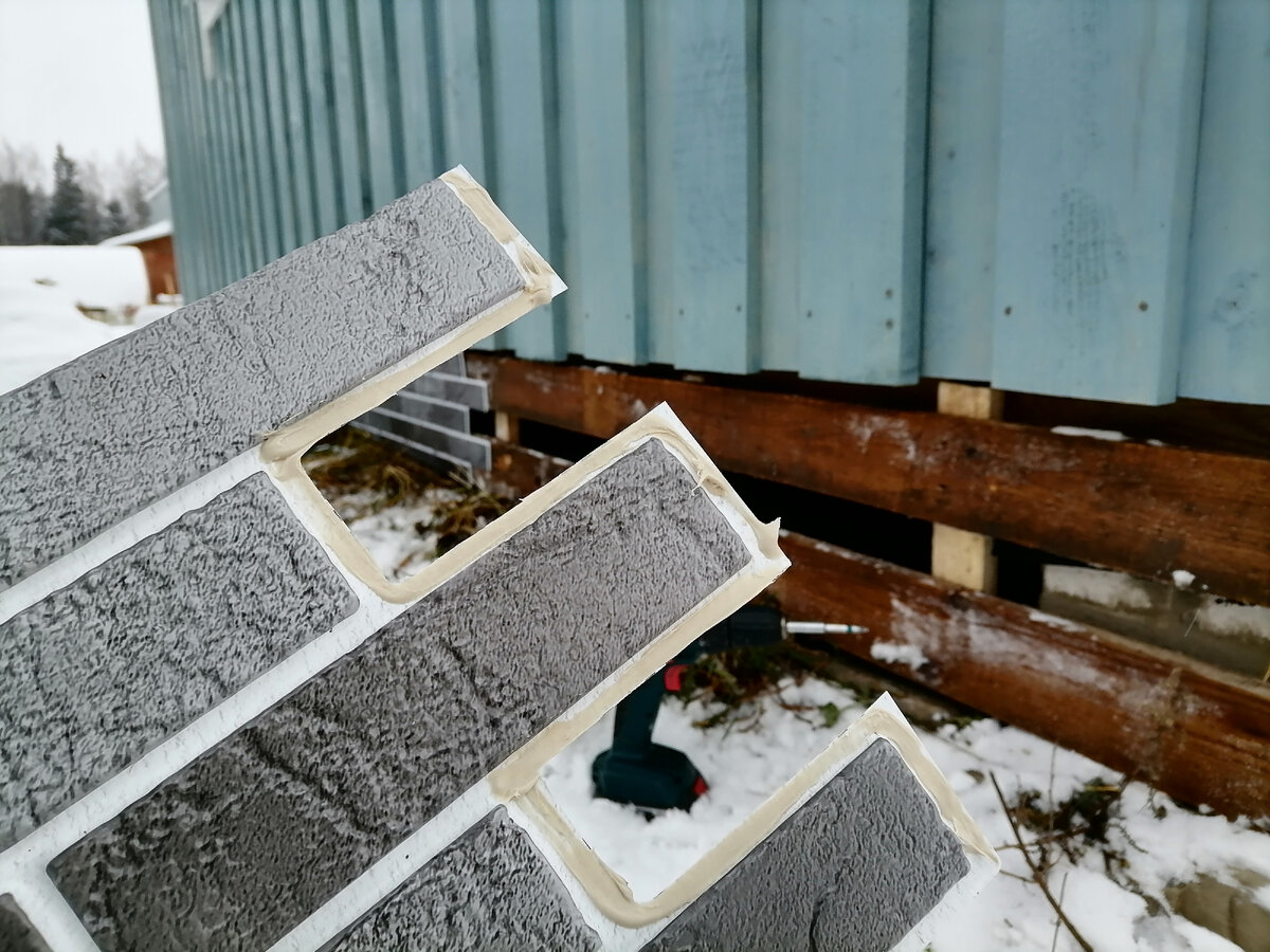 Всем привет! В декабре 2020 купил заброшенный участок у соседа, чтобы построить каркасник. Участок был заросший - делаю из него "конфетку" ! Удалось до первого снега разобраться и с покраской дома и с фасадом. Основной объем наружной отделки почти закончен. Остался последний #штрих - нужно закрыть цоколь домика. Изначально планировал использовать ЦСП-плиту, но, гуляя по строительном магазину, увидел дешёвые ПВХ панели для фасада. Привлекательная цена - 130 рублей за штуку, окончательно развеяла все мои сомнения. Панели сделаны под имитацию кирпича. По качеству панели не плохие. Несмотря на то, что на первый взгляд они мягковаты, на холоде все равно не трескаются даже если сильно погнуть. На мои размеры цоколя 5*6 получилось 30 штук * 130 руб. = 3900 рублей. Монтаж В инструкции было написано, что панели надо крепить на плоскую поверхность. Я решил просто сделать обрешетку с небольшим шагом. Для крепления использовал жидкие гвозди и саморезы с пресшайбой. В ходе установки плиты я