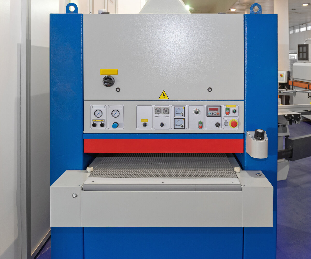 КШС – это станок, состоящий из одной или нескольких шлифовальных станций, на которые устанавливается широкая шлифовальная лента. Заготовка – например, дверь, стеновая декоративная панель, кухонный фасад, клееный мебельный щит, металлический лист– подаётся в станок при помощи транспортировочной ленты. Если станций в станке КШС несколько, то всё шлифование можно осуществить в один проход детали. Например, на первой станции стоит шлифовальная лента с зерном Р80, которая калибрует древесину, далее более тонкая лента для промежуточной шлифовки, и на третьей станции – финишная. На выходе из станка – готовое изделие!