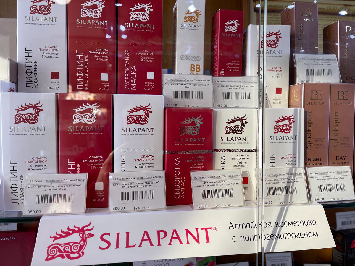 Из поездок хочется привезти что-то местное и особенное. Обычно я вожу что-то съедобное, но вот решила побаловать подружек и купить им что-то алтайское. Регион славится травами, всякими дикоросами, маслами и, конечно, пантами. Вот с этими стереотипами в голове я и пошла в косметический магазин. Вообще я консервативный человек в плане косметики, у меня есть какой-то привычный набор марок, и я ими пользуюсь. Не экспериментирую. Поэтому в магазине все для меня было в новинку. Ассортимент местной продукции достаточно большой. Есть несколько местных марок с разными конкурентными преимуществами. Одни делают косметику на травах, другие на пантах, третьи сочетают все со всем и еще какие-то новые технологии применяют. Я, например, ни разу не слышала про нативную косметику, а, оказывается, есть и такая. Какие-то липосомы, пептиды, флюиды, крем-свеча (это как?). В общем интересного много. И состав тоже удивляет, кроме традиционного алтайского пантогематогена, трав и масел, тут тебе и кокон шелкоп