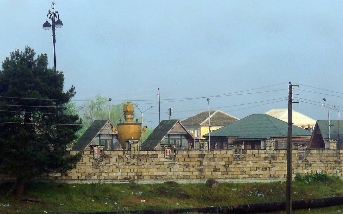Утром я увидел снаружи туманное тёплое утро. Ленкорань встречает самоваром размером с дом - этот, казалось бы, типично русский атрибут в ХХ веке зажил своей жизнью в Азербайджане и Иране, а Ленкорань ещё и столицей "азерчая" слывёт.
