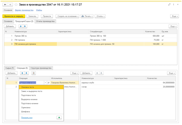 В дополнение к этому в заказе производства можно расписать и запланировать операции производства продукции