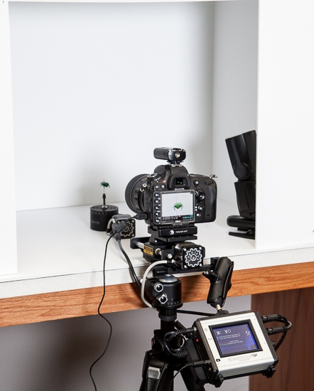 Чтобы создать сложный виртуальный объект, необходимо, чтобы объект вращался, а камера (или объект) двигалась вперед и назад относительно объекта. Одна из возможностей показана выше. Просто подстройте свою систему к предмету и оборудованию. Как только все будет установлено, нам нужно будет подключить рельс StackShot к оси X (верхняя ось), а поворотный стол к оси Y (второй сверху). Камера должна быть подключена к выходу затвора с помощью соединительного кабеля затвора. Единственное соединение остается между вспышкой и камерой. В этой ситуации я использовал триггеры беспроводного управления вспышками. Однако любой надежный метод будет работать нормально. В этой ситуации StackShot запускает камеру через кабель управления затвором, и камера будет активировать вспышки.
