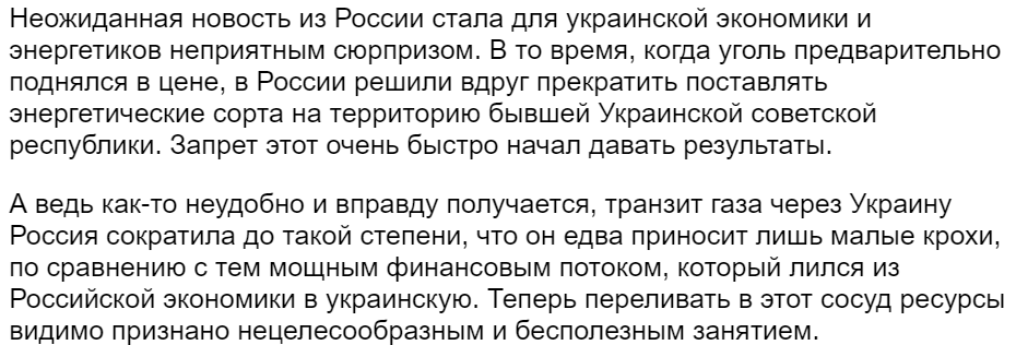 Отказ России поставлять на Украину уголь уже начал приносить первые результаты. Не все знают, а жаль
