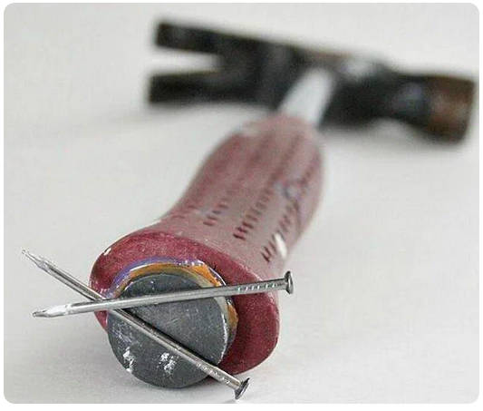 Если закрепить на молотке маленький магнит, тогда гвозди всегда будут находиться рядом.
