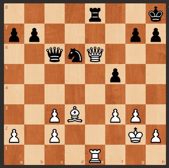 Предлагаю Вашему вниманию окончание шахматной партии Смыслов - Лилиенталь, 1941 год. У белых лишняя пешка. Но последним ходом черные напали на белого ферзя. Если белый ферзь отойдет, то черные заберут белую ладью. Однако белые начинают и выигрывают. Смыслов сходил и Лилиенталь сдался. Подписывайтесь на канал, будут новые интересные задачи. Выигрыш за белых смотрите далее. 1. Смыслов забрал ферзем коня на d6 и черные сдались. Следующая задача тут>>>>
