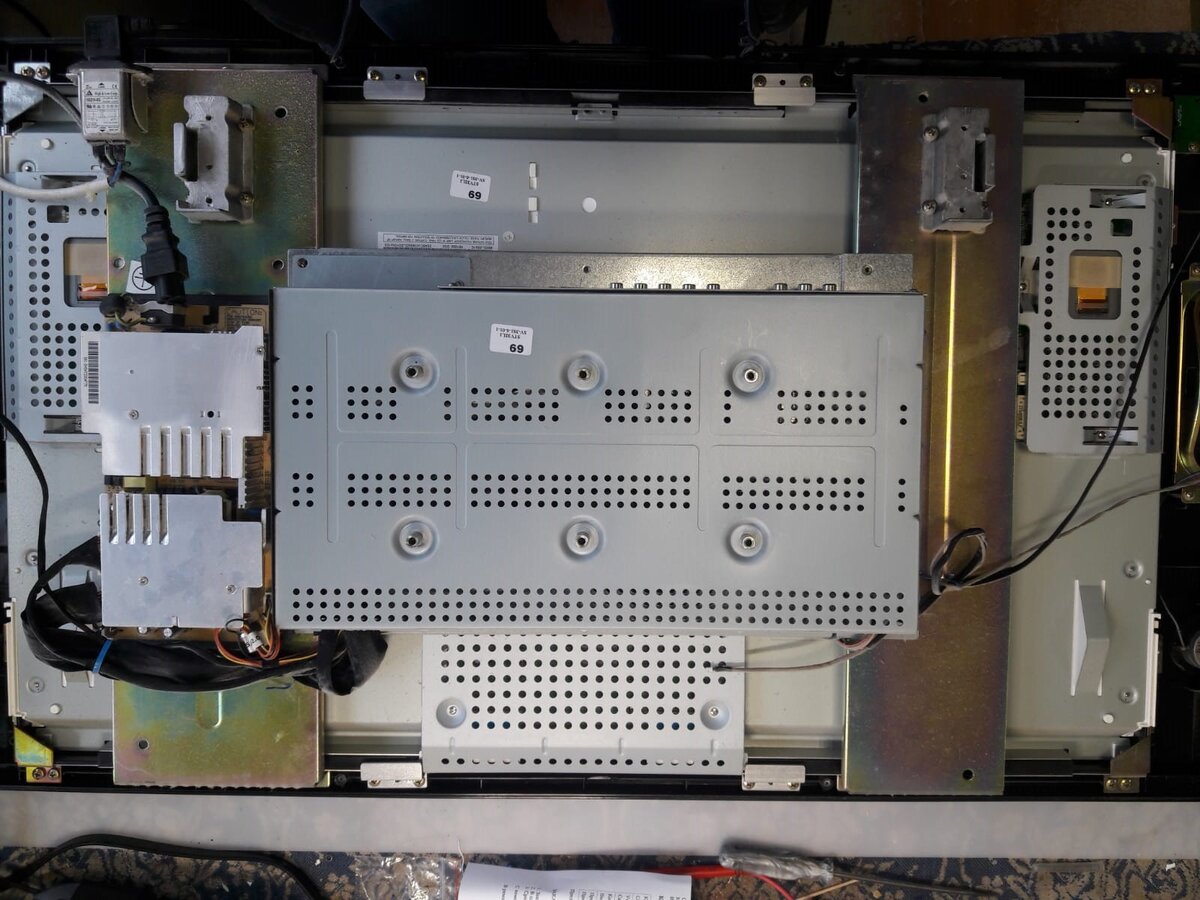 Всем здравствуйте! Сегодня мы ремонтируем телевизор Shivaki STV-32L1 "2006 года рождения" с диагнозом пропало изображение и перестал включаться. Я так понял это телевизор дослушивали как радио, раз сначала изображение пропало, а потом совсем перестал работать - шутка , а может и нет :) Дефекты не сложные , но опять с небольшими непонятками :) Фото внутренностей. Первая проблема у нас была в блоке питания. Модель блока питания fsp179-4f01 ремонт и схема будут ниже. fsp179-4f01 схема. Но схема нам не потребовалась. У нас дефекты "на лицо". Вздутые конденсаторы. При неисправных конденсаторах блок вёл себя следующим образом. Вместо заявленных напряжений у нас было следующее. Дежурка вместо 5 - 2,5 вольт, вместо 12 - 6,1волльт , а вместо 24 вольт были пульсации примерно от 6,5 до 15. Конденсаторы которые я обвёл красным были заменены сразу и блок питания запустился. Зелёным я обвёл конденсаторы которые можно заменить в профилактических целях. После замены конденсаторов телевизор зап
