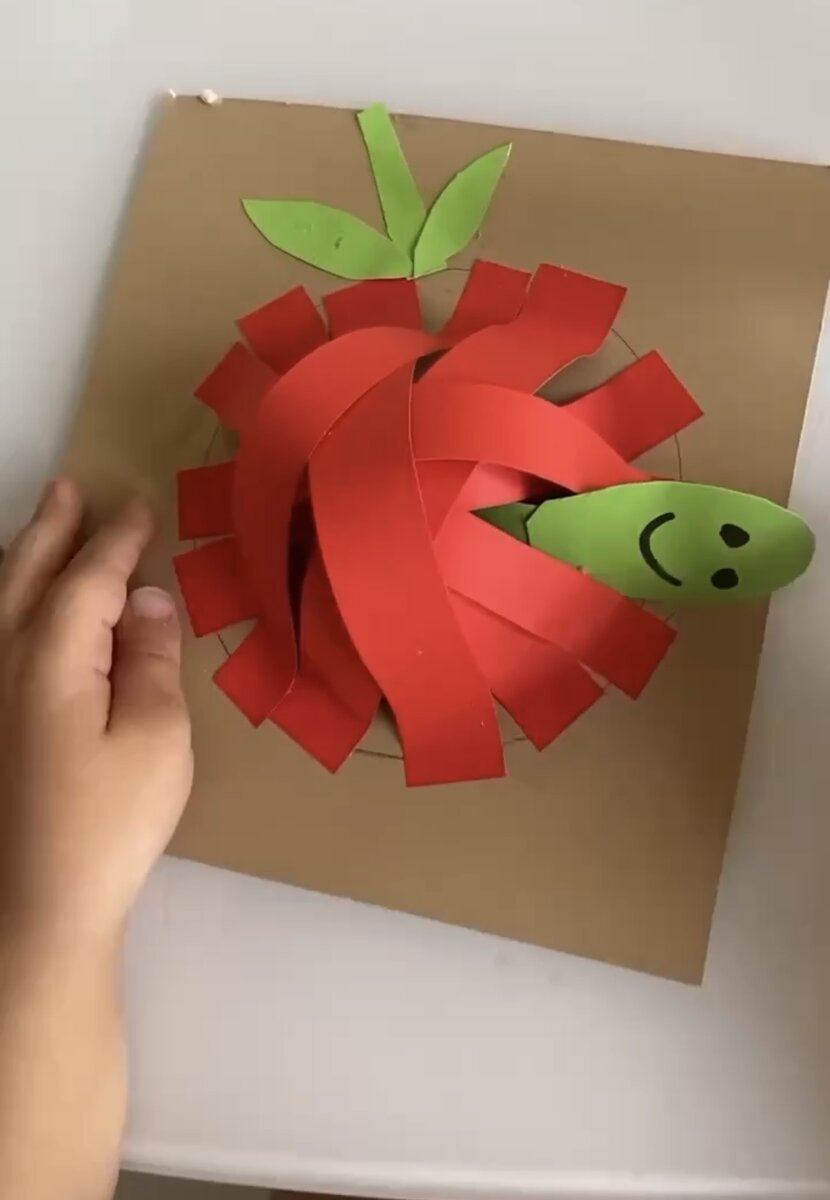 Для такой веселой поделки нам понадобится: 1. Вырезаем полосочки из красной бумаги. Из зеленой - червячка и листики. 2. Обводим тарелку, как на картинке ниже 3.Даем ребенку клей и показываем, как клеить В конце приклеиваем листики и червячка #развивашки для детей #развивашки своими руками #поделки своими руками #поделки с детьми #поделки из бумаги #поделки в детский сад