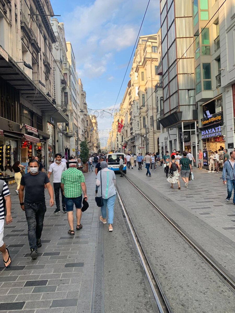 Московский Арбат в Стамбуле-это знаменитая İstiklâl caddesi. Но сравнение конечно очень утрировано. По мне, похожи они только тем, что обе улицы-пешеходные. Истикляль Кадеши начинается с площади Таксим и тянется в длину почти на 1,5 километра, заканчиваясь в районе Галатского моста. Говорят сверху Истикляль похожа на бумеранг. В теории расстояние-то небольшое. И его можно пройти меньше, чем за час. Но на практике, если ты попал на улицу Истикляль, то зависаешь там минимум часа на 3. Эти фото сделаны в сентябре 2020 года. Во времена пандемии даже Истикляль выглядела непривычно пустой. Попав туда в 2021,я увидела, какой это муравейник даже в будний день! Улица Истикляль-это неспешные прогулки. Когда хочется немного разбавить культурную программу шоппингом и вкусной едой. Этого на Истикляль хоть отбавляй. Огромное количество магазинов, как брендовых, так и маленьких местных. Можно опять же Джана Ямана увидеть по пути:))Кстати, если кто настроен на шоппинг, обратите внимание на магаз
