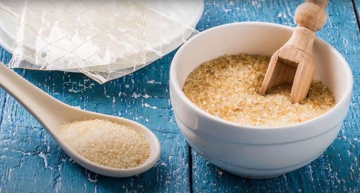 Что такое желатин? Это фруктовое желе, нежное заливное или вкуснейший мамин холодец ... А ещё желатин - это уникальное по своему действию средство красоты. Чем он полезен? Желатин - маленькие желтые гранулы, пакетик с которыми найдется на кухне у каждой хозяйки и это не что иное, как продукт переработки соединительной ткани животных. "А чем же,- спросите вы, - могут быть полезны моей красоте вытяжки из говяжьих костей, сухожилий и хрящей?" Ответ: наличием в своем составе коллагена - того самого "волшебного" вещества, которое "отвечает" за молодость и упругость нашей кожи. Кроме того, желатин - естественный источник веществ, способствующих формированию кератина (белка, из которого состоит волос). В его составе - масса полезных микроэлементов (магний, железо, калий, натрий, фосфор), а так же аминокислоты и пищевые волокна. Результат - на лице Желатин включают в состав масок, шампуней, средств для укрепления ногтей. На его основе готовят и натуральную домашнюю косметику. Эффект от примен