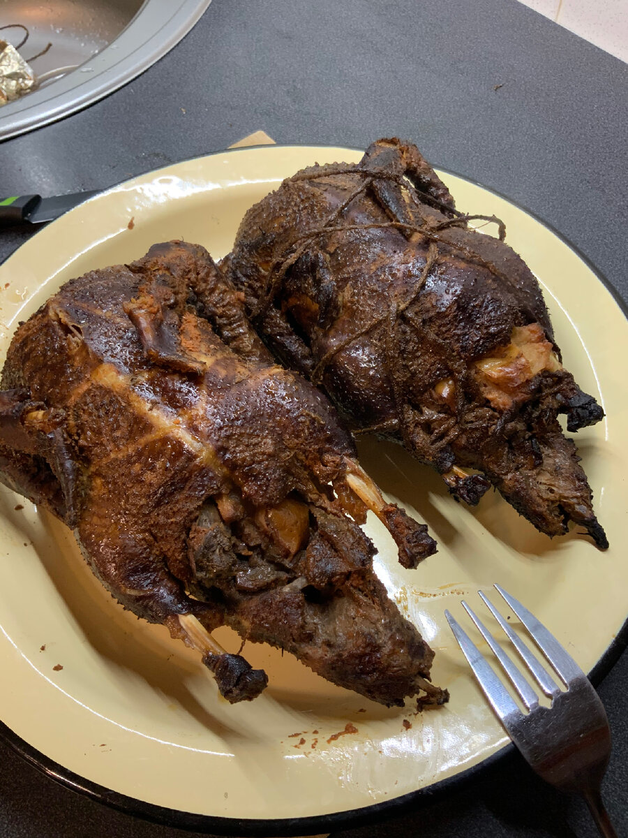 Я уже рассказывала о мускусных утках и обещала поделиться рецептами приготовления из мяса этой птицы. Сегодня хочу рассказать о том, как мы готовим копченых уток с яблоками. Итак: достаю из морозильной камеры 2-3 тушки, обычно каждая на 1,4 кг, но есть и крупные на 3-3,5 кг. Таких мы оставляем на праздничный стол. Тушки лучше оставлять с вечера до утра в прохладном помещении. Утром обмываю как следует водой , посыпаю солью и перцем. Соли беру 1,2% от веса тушки или же на глаз( если уже знаете свои предпочтения по соли). И так тушки лежат часа 3-4, причём периодически их переворачиваю и натираю выделившимся соком. Прошло 4 часа и муж растапливает в мангале дрова. В это время очищаю яблоки от кожицы и семян и режу их на крупные кубики, подсаливаю и в каждую утку, плотно утрамбовывая, закладывая яблоки. Затем каждую тушку обвязываю нитками или бечевкой, чтобы тушка не распалась. И вот муж закладывает в простенькую коптильню немного ольховой щепы и немного яблочной, забирает тушки