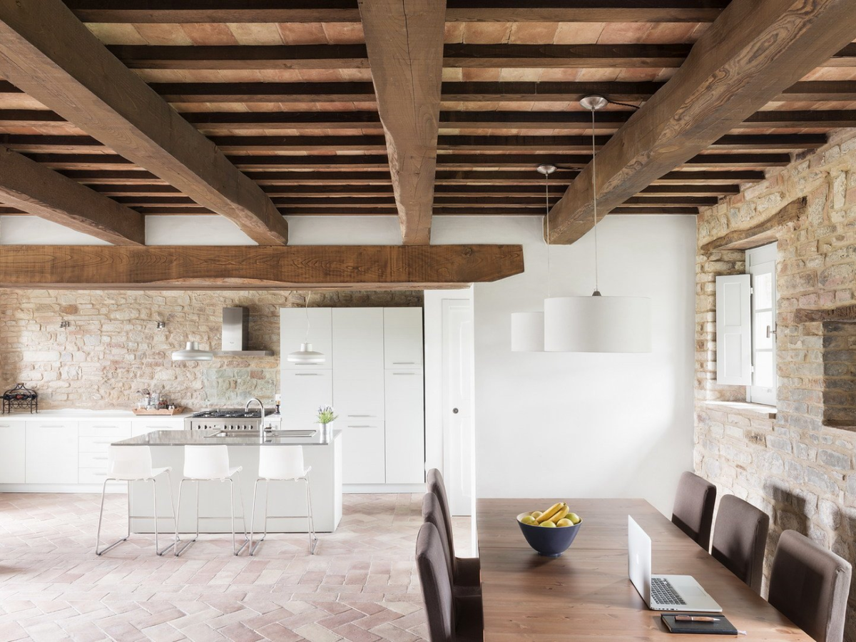 Разберем плюсы и минусы потолочных балок на кухне, и из какого материала они бывают. Плюсы потолочных балок Минусы потолочных балок Из какого материала бывают потолочные балки Деревянные Обычно из ели или сосны, реже — ясень или дуб. Преимущества: Недостатки: Фальшбалки из гипсокартона Преимущества: Недостатки: Металлические трубы и рейки Преимущества: Недостатки: