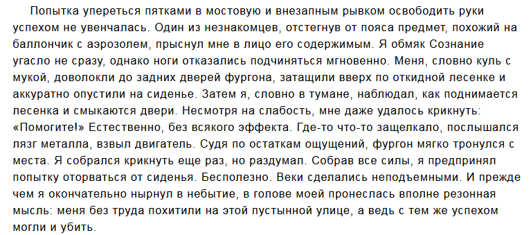 Попытка упереться пятками в мостовую и внезапным рывком освободить руки успехом не увенчалась