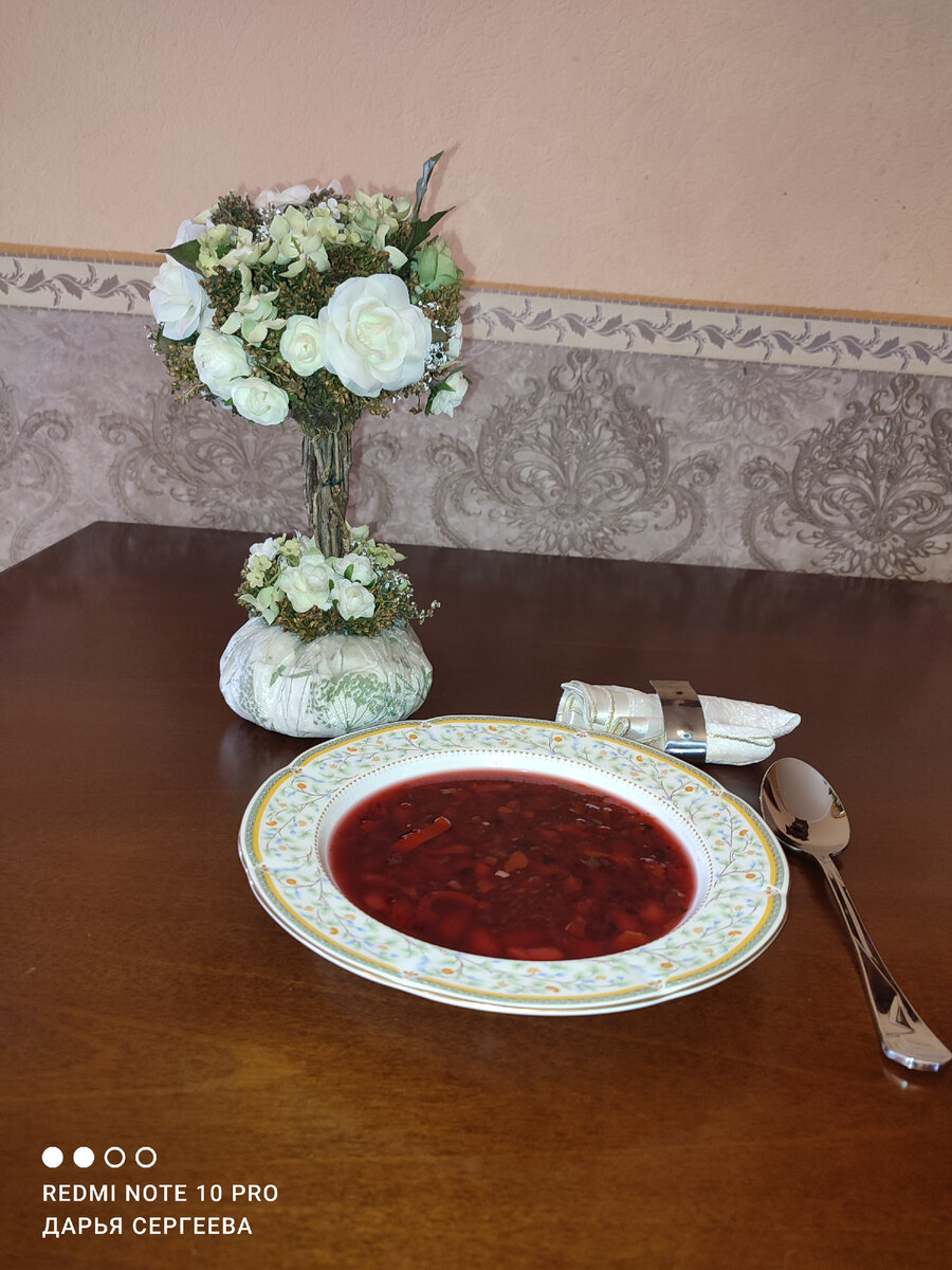 Свекольник - не только летний холодный суп на свекольном отваре. Есть горячий свекольник - сытный и легкий суп Его готовят и едят во все времена года казачки. В кулинарной традиции казачества он живет много лет. Мне рецепт передала моя бабушка - казачка Горячий свекольник готовится на постном (овощном или грибном), мясном или курином бульоне. Выбор бульона зависит от погоды, настроения, наличия продуктов. В казачьей традиции, конечно, еще от того, постный день или скоромный. Религиозные традиции важны для казаков Само мясо или грибы в супе не использовались и находили применение в других блюдах - салатах, закусках, или просто подавались отдельно Продукты очень простые, технология приготовления тоже В зимний период, когда свежего сладкого перца не было, использовали соленый перец, хранившийся в погребе. В этом случае суп просто не солили))) Я не знаю, как давно сладкий перец появился на юге нашей страны, но в начале 20 века уже точно был - моя бабушка готовила уже с ним Нам сейчас не н